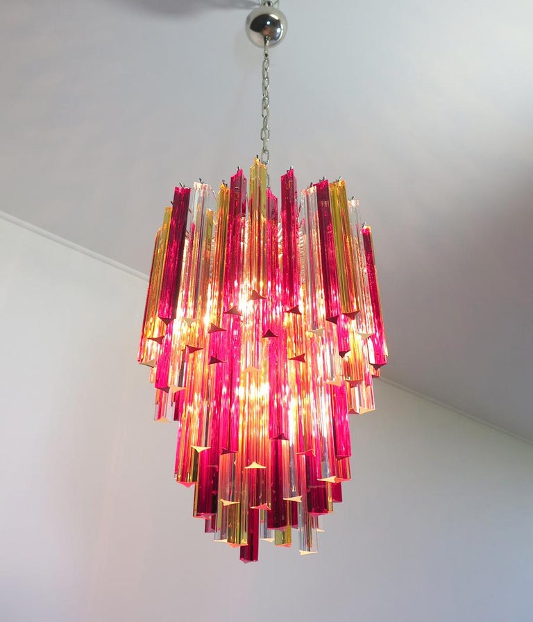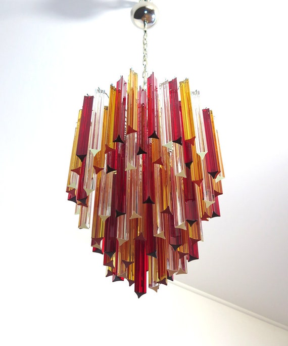 Murano Chandelier Triedri 92 Prism Trasparent Yellow And Red Glasses
