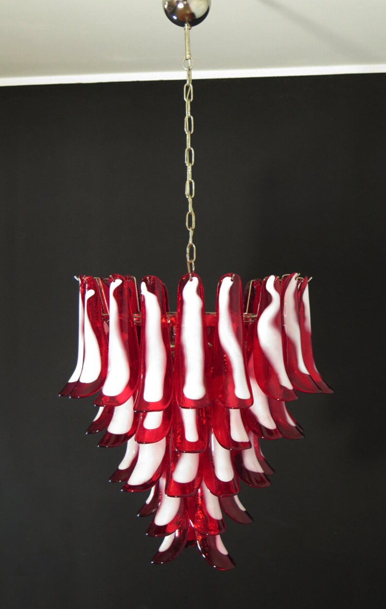 Italian Vintage Murano Chandelier Mazzega 53 Red Lattimo Glass Petals