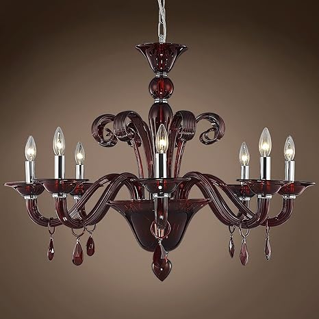 Murano Design 8 Light 36 Red Chandelier With Murano Glass