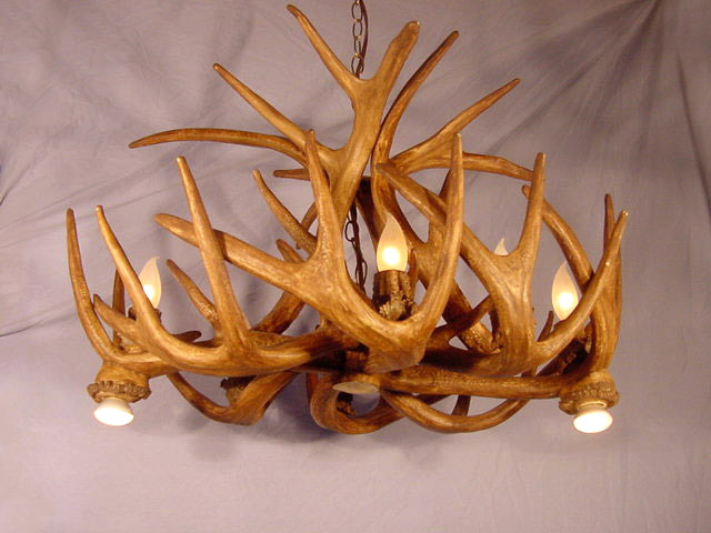 Whitetail Deer 6 Antler Chandelier W Center Light Rustic Light