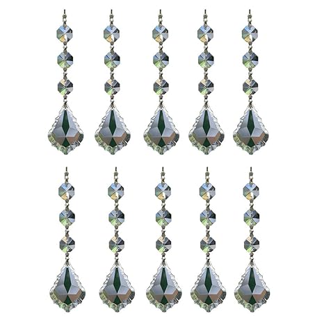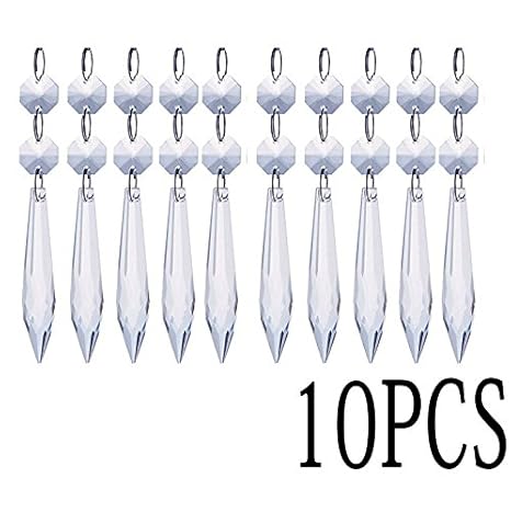 Waltz F Large Clear Crystal Chandelier Icicle Prisms Lamp Candelabra Replacement Parts With Octagon Beads Diy Crystal Curtain Pendants Pack Of 10