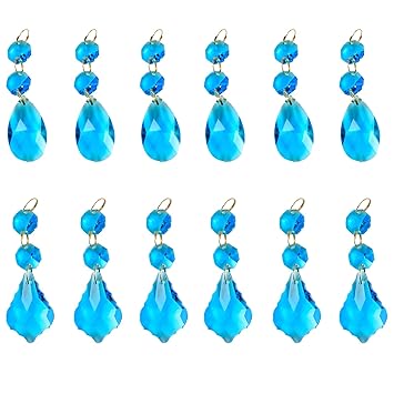 Bihrtc 12 Pcs 38mm Blue Galss Crystal Chandelier Prisms Parts Hanging Beads 6 Pcs Teardrop 6 Pcs Maple Leaf Crystal Pendants