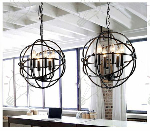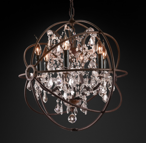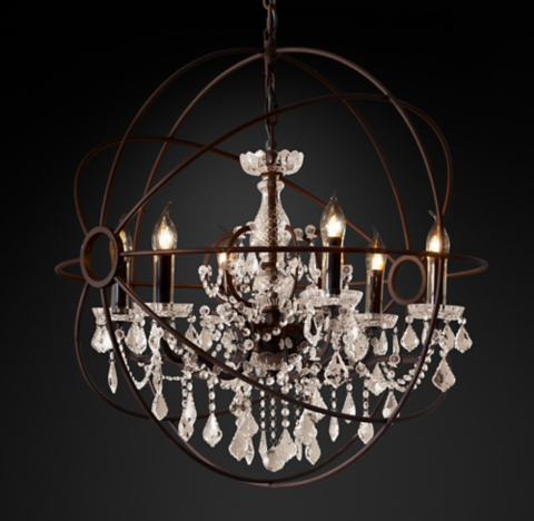Rh Industrial Lighting Restoration Hardware Vintage Crystal Chandelier Pendant Lamp Foucault Iron Orb Chandelier Rustic Iron Gyro Loft Light
