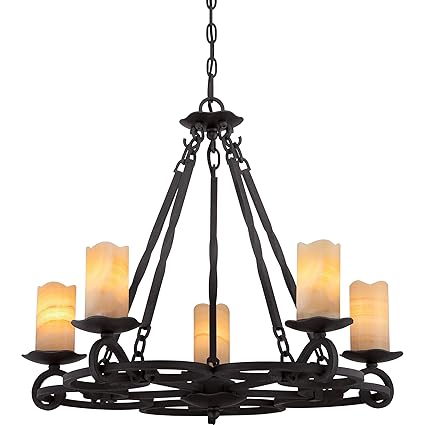 Quoizel Ame5005ib Armelle Rustic Lodge Faux Alabaster Candle Chandelier 5 Light 300 Watts Imperial Bronze 23 H X 28 W