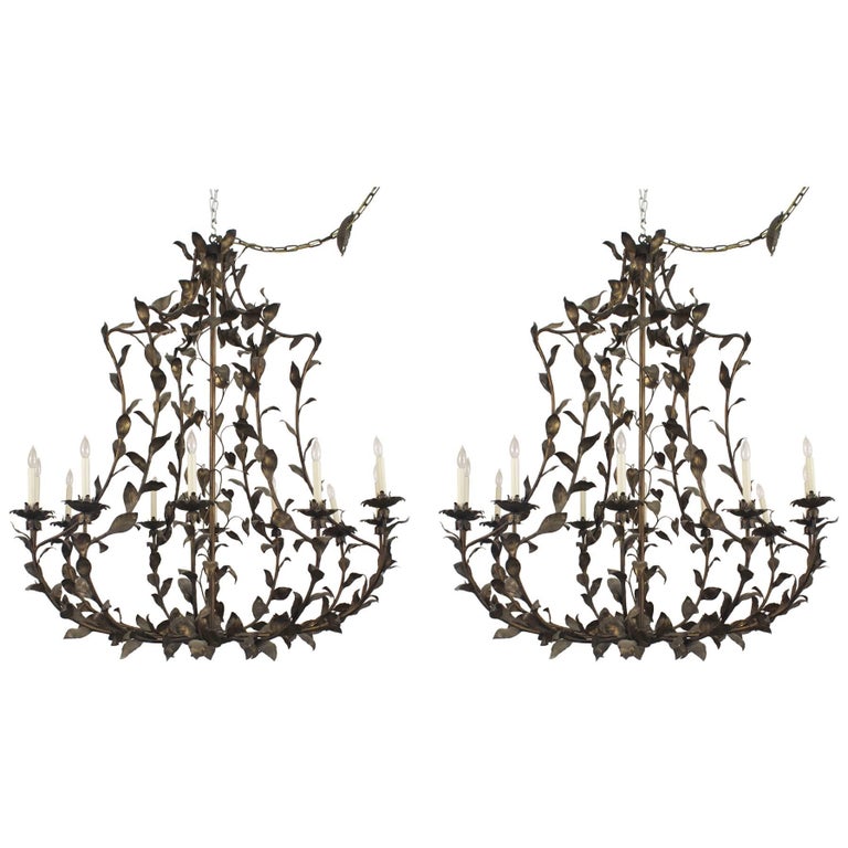 American Country Rustic Style Midcentury Dark Metal Twelve Arm Chandeliers