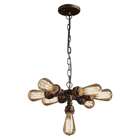 Oyi Industrial Steampunk Chandeliers 7 Lights Rustic Water Pipe Style Adjustable Metal Sputnik Pendant Light Ceiling Lighting Fixture E26