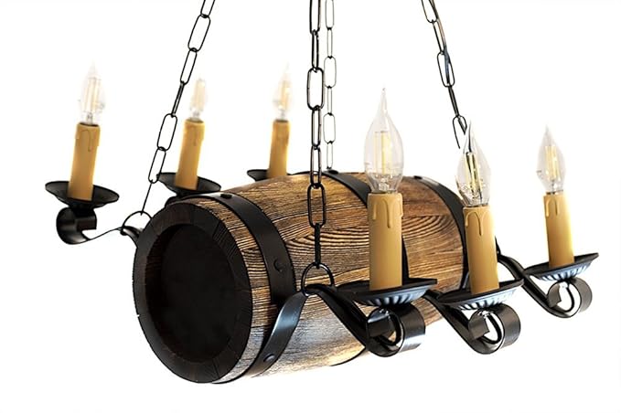 Wood Barrel Farmhouse Rustic Chandelier Ceiling Lights