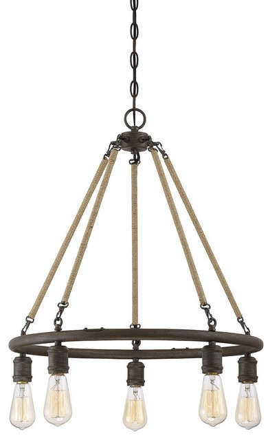 Trade Winds Lighting Rustic 5 Light Chandelier In Rusty Nail With Rope Accents