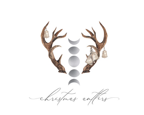 Christmas Watercolor Deer Antlers Moon Phases Silver Bell Clipart Winter Painting Decor Card Invitation Magic Lunar Illustration Digital Png