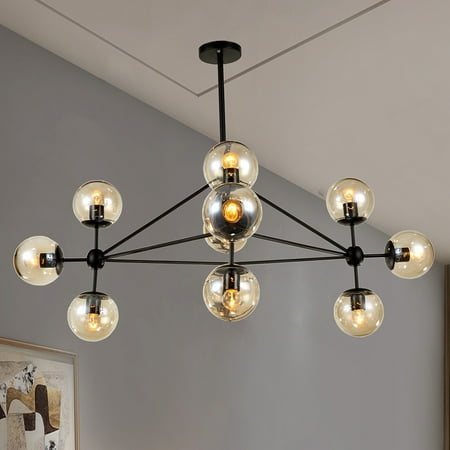 Enthen 10 Light Orb Black Chandelier Includes Edison Bulbs