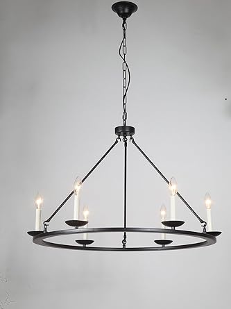 Modern Farmhouse Wrought Iron 6 Light Black Chandelier