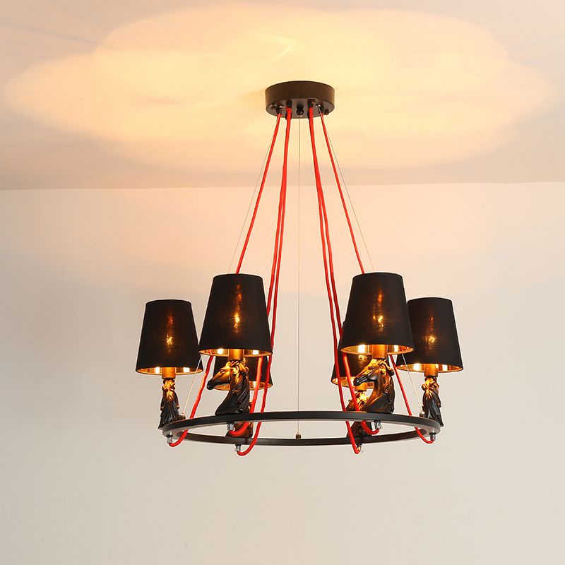 Us 175 0 American Style Iron Golden Chandelier Nordic Modern Simple Black Fabric Pendant Living Room Restaurant Bedroom Round Chandelier In Pendant