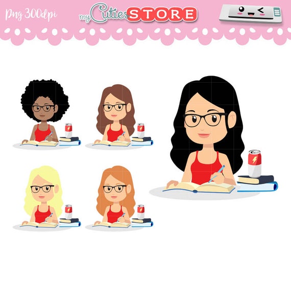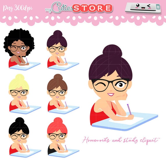 Girl Doing Homeworks Study Clipart Set Digital Graphics Set Great For Planner Stickers Or Digital Planning Commercial Use Ok