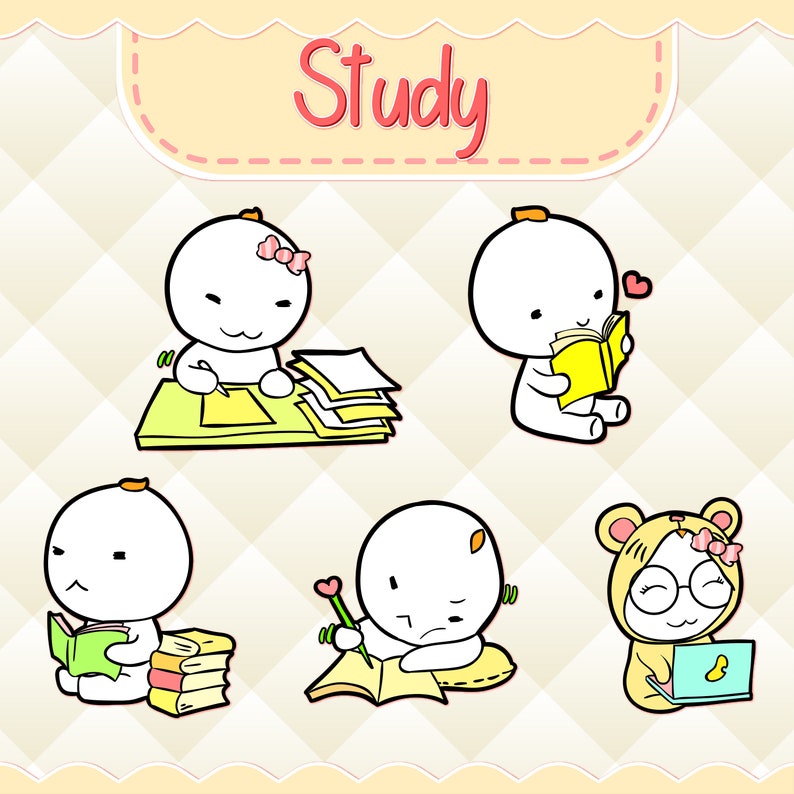 Study Clipart Kawaii Design Download Cute Study Clipart Hand Drawn Planner Stickers Clipart Clip Art Instant Download Png File