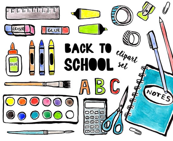 School Supplies Clipart Set Stationery Back To School Pencils Crayons Education Personal Use Small Commercial Use Instant Download
