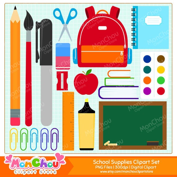 School Supplies Clip Art Back To School Clipart Book Clipart Teacher Clipart Classroom Clipart Instant Download Commercial