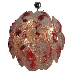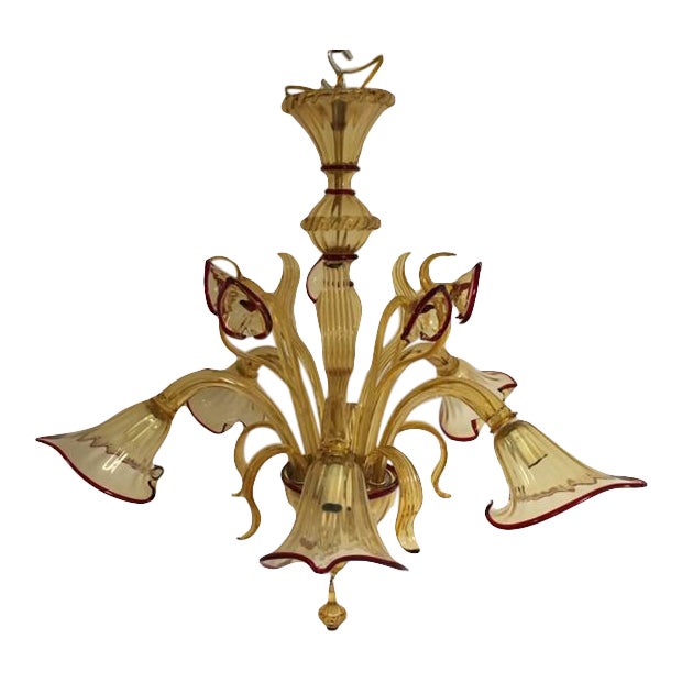 Vintage Amber Red Trim Lily Style Murano Chandelier