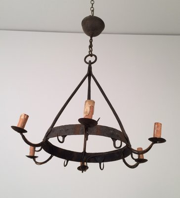 Antique Five Arm Gothic Style Wrought Iron Chandelier