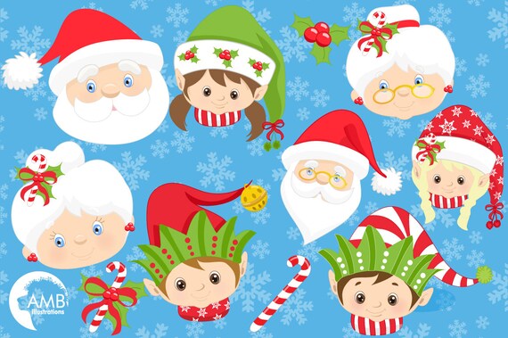 Christmas Faces Clipart Christmas Santa Clipart Mrs Claus And Christmas Elves Clipart Commercial Use Instant Download Amb 191