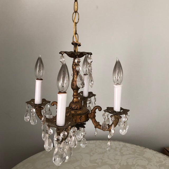 Small Antique Bronze And Crystal Chandelier