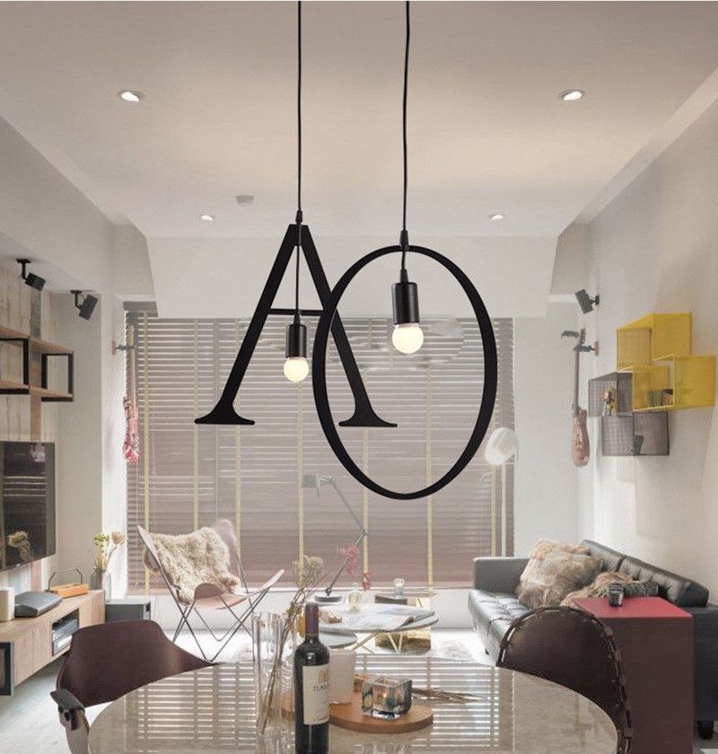 Modern Simple Letters Alphabetic Spelling Iron Chandelier Bar Cafe Balcony Creative Personality