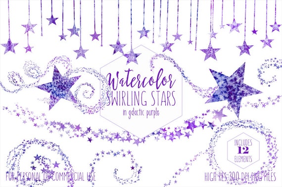 Purple Watercolor Star Clipart Commercial Use Clip Art Star Sky Graphics Dark Purple Galaxy Star Border Celestial Stars Baby Shower Graphics
