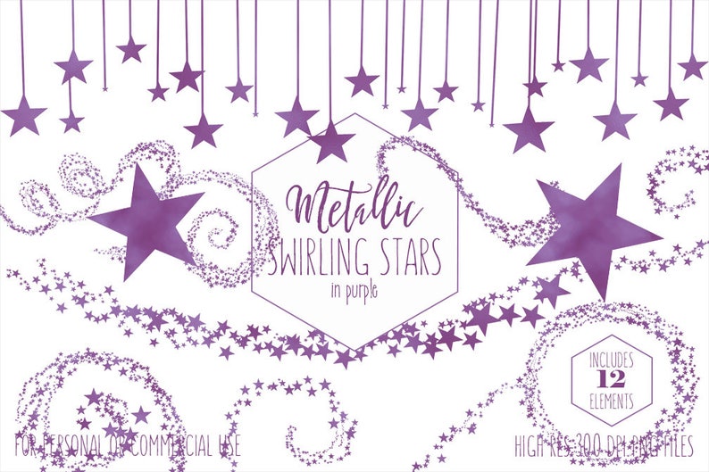 Purple Star Clipart For Commercial Use Kids Clip Art Dark Purple Swirling Stars Frames Banner Celestial Sky Birthday Party Digital Graphics