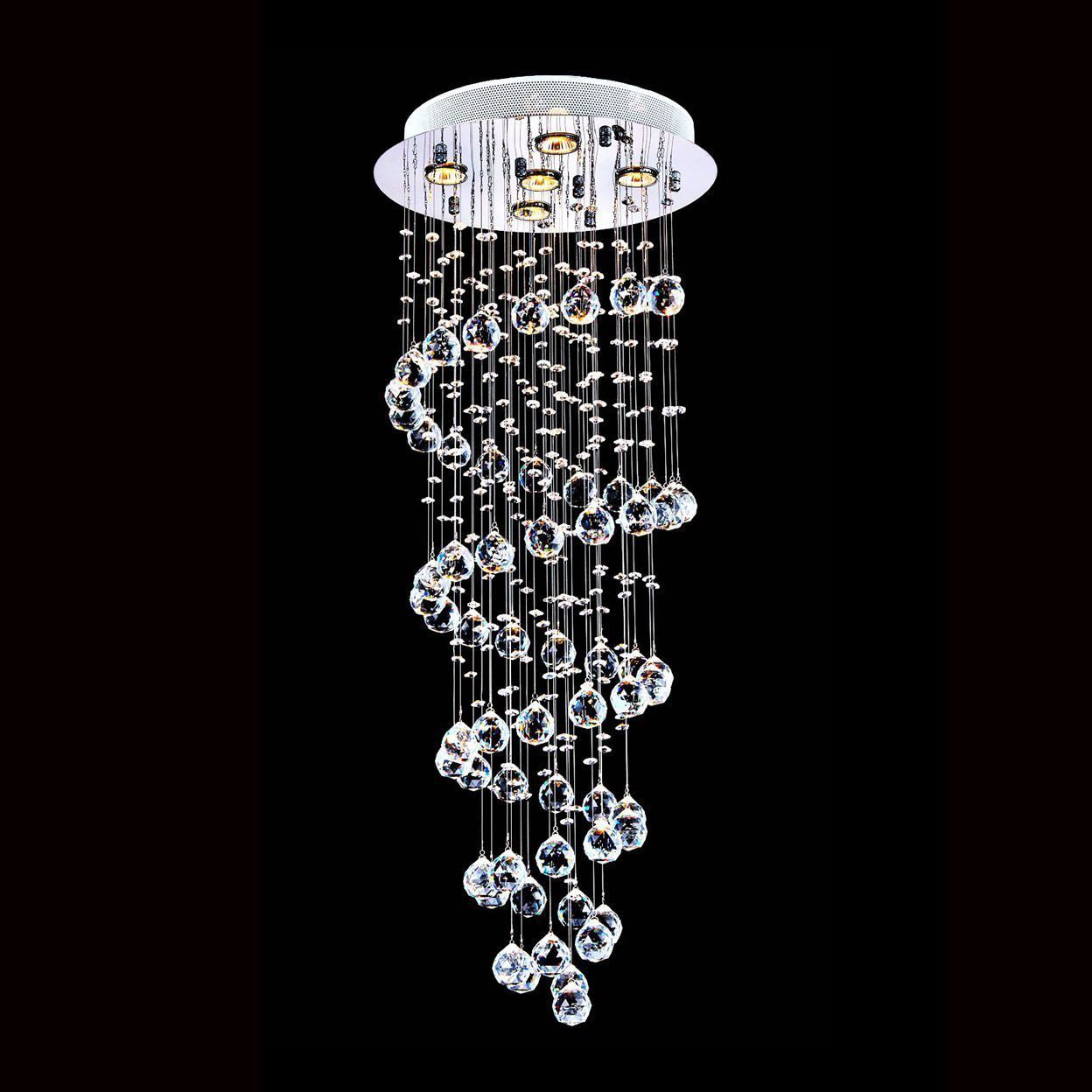Luxury Led Raindrop Chandelier Crystal Light Gu10 Led Bulb Lamps Flush Mount Staircase Lighting Fixture Stainless Steel Cold White 110v 220v
