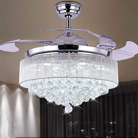 Details About 42 Retractable Crystal Led Ceiling Fan Light Remote Control Chandelier Home Us