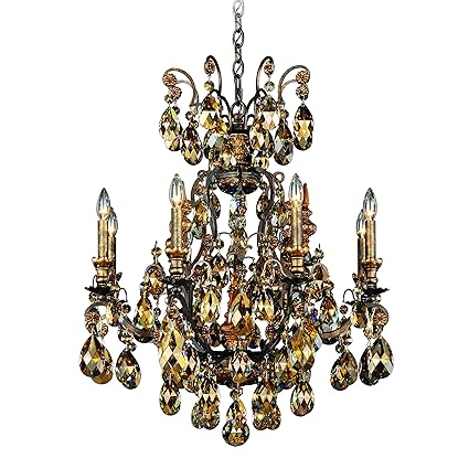 Schonbek 3787 26tk Renaissance 8 Light Crystal Chandelier In French Gold With Golden Teak Crystal From Swarovski