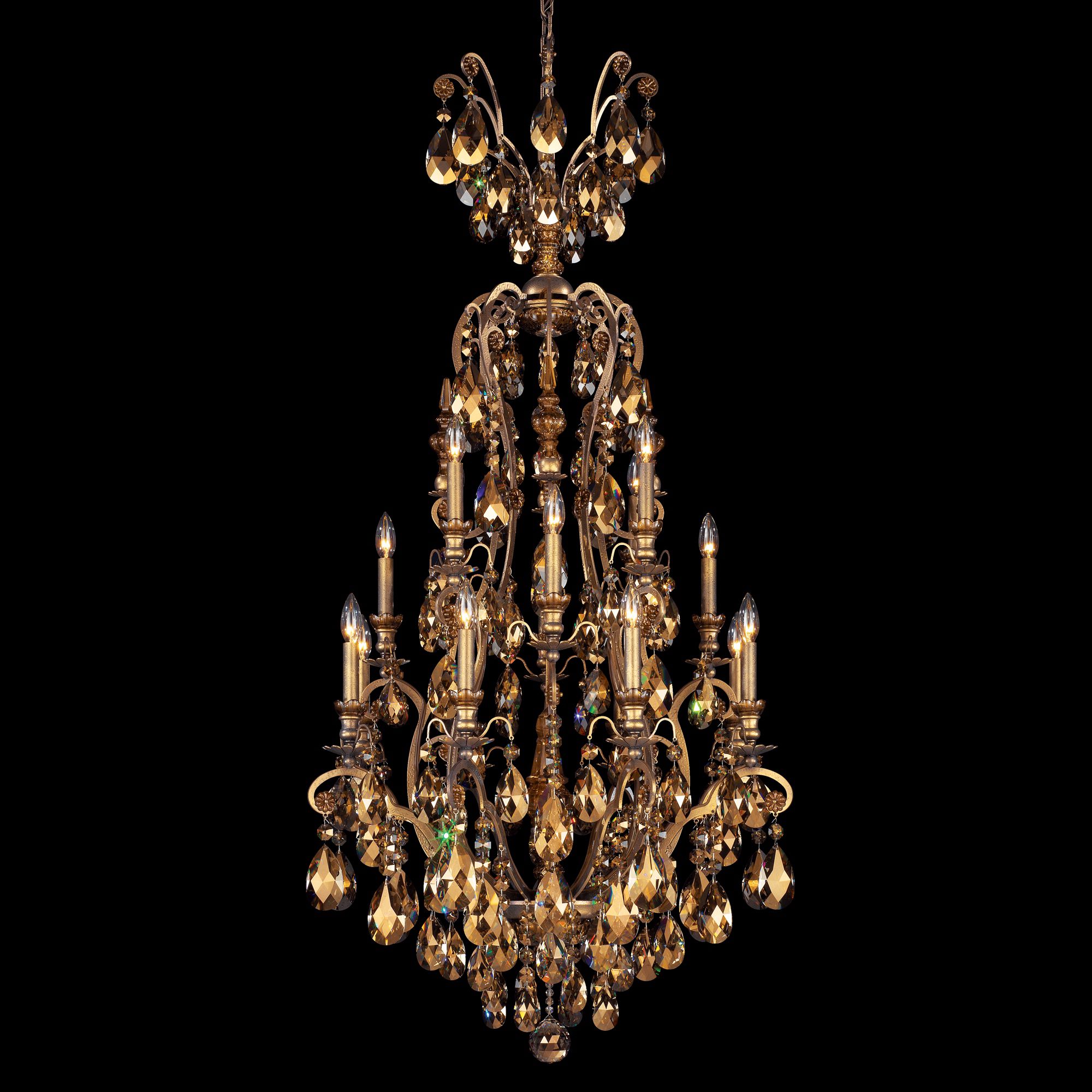 Schonbek 3782 26tk Renaissance 17 Light Crystal Chandelier In French Gold With Golden Teak Crystal From Swarovski