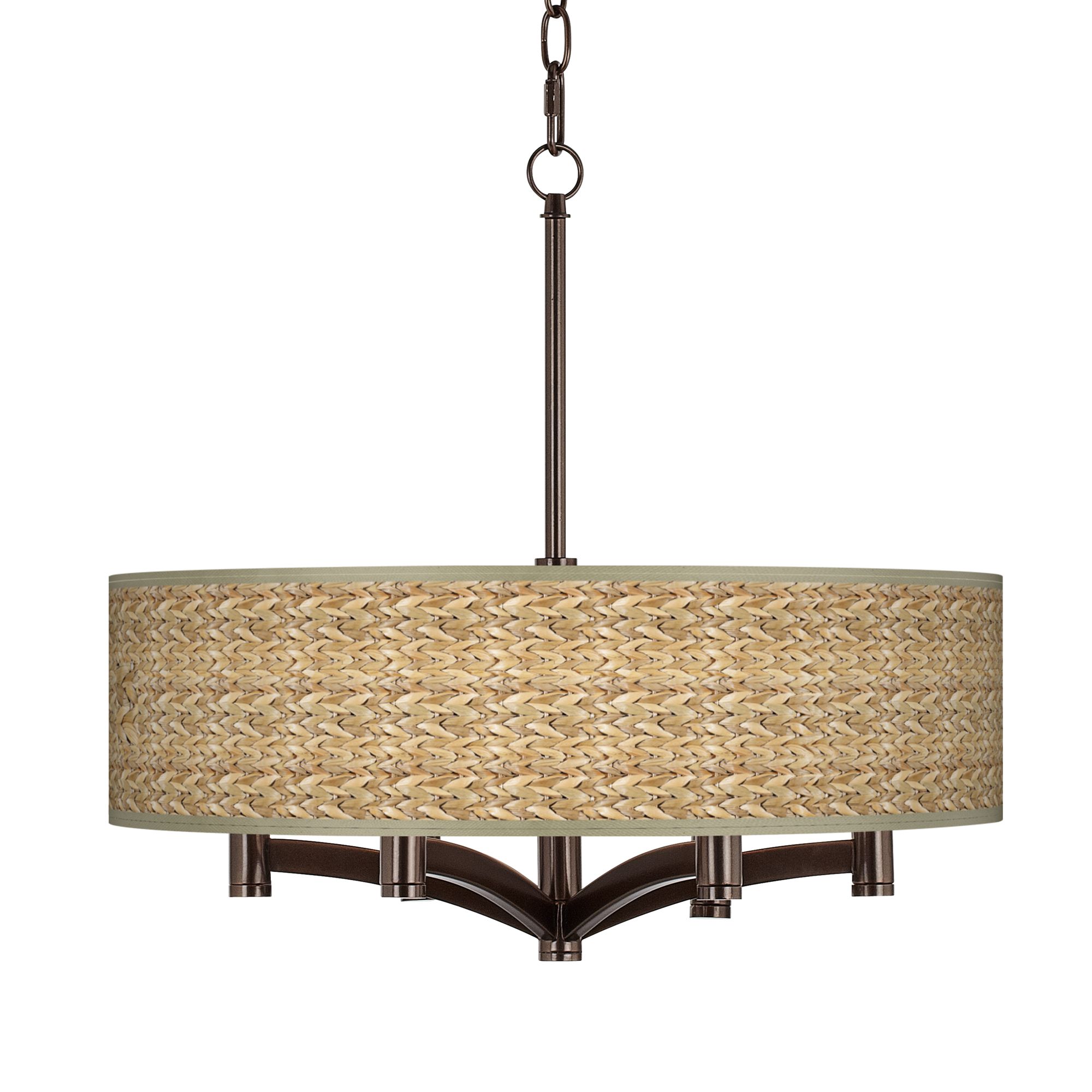 Seagrass Print Pattern Ava 6 Light Bronze Pendant Chandelier
