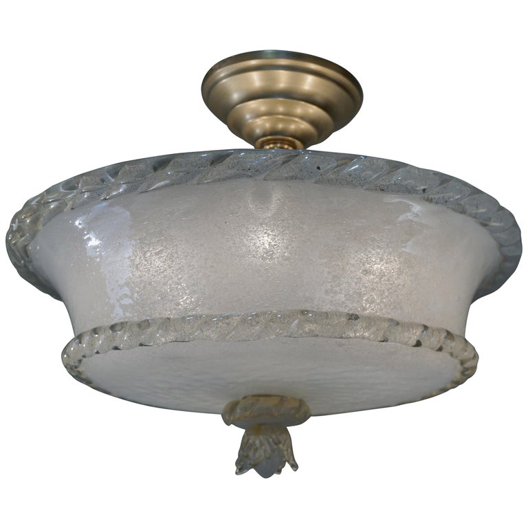 Midcentury Murano Glass Semi Flush Mount Chandelier By Barovier Toso