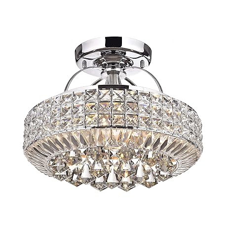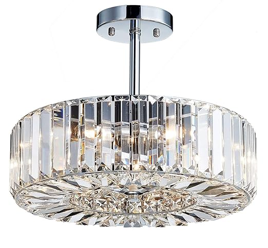 Saint Mossi Modern Crystal Semi Flush Mount Chandelier Lighting Close To Ceiling Lights Clear Crystal Lampshade 16 Inch Width 10 Inch Height