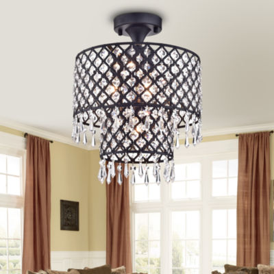 Anika Black Finish 12 Inch Crystal Semi Flush Mount Chandelier