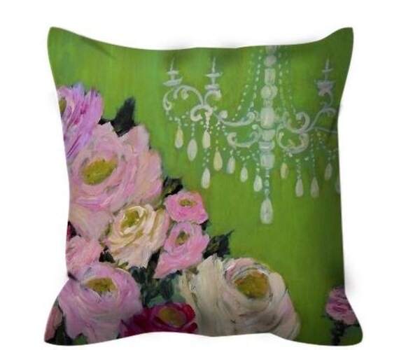 Shabby Chic Pink And Green Chandelier And Roses Decorative Throw Pillow Shabby Chic Decor Romantic Decor Bedroom Decor Pillow