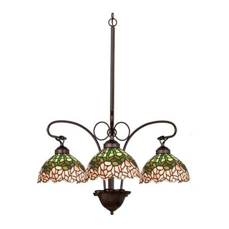 Cabbage Rose 3 Light Chandelier In Pink And Green