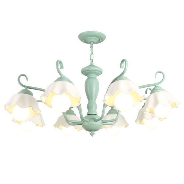 Macaron Nordic Ins Idyllic Korean Pink Green Chandelier White Princess Girl Children Room Bedroom Dining Room Crystal Chandelier