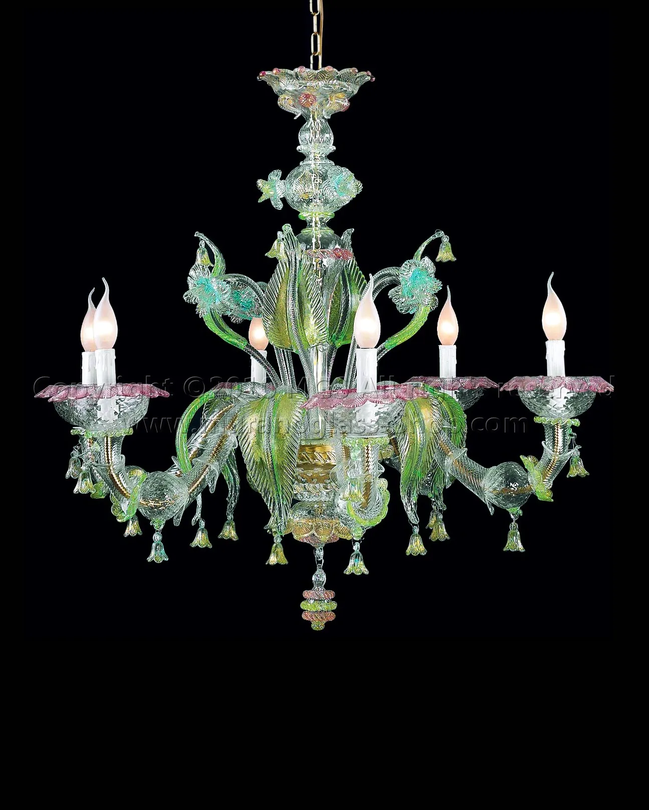 Details About Elegant Murano Glass Chandelier 8 Light Green Pink Gold And Crystal