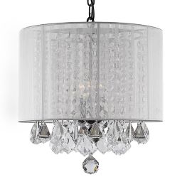 White Drum Shade Crystal Ceiling Chandelier Pendant Light Fixture Lighting Lamp Swag Plug In Chandelier W 14 Feet Of Hanging Chain And Wire