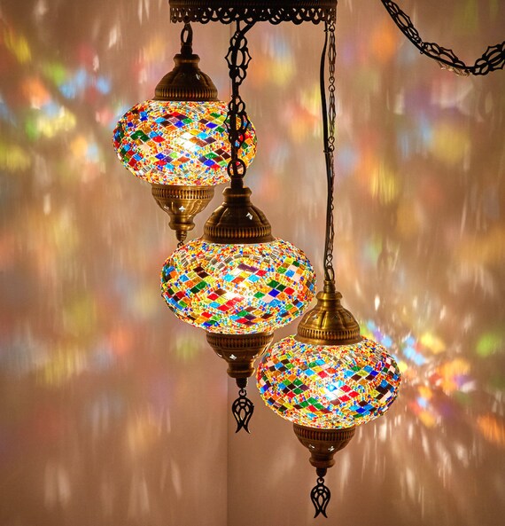 Plug In Light 3 X 7 Globes Turkish Moroccan Mosaic Swag Plug In With Cord Hanging Ceiling Lamp Pendant Light Fixture Chandelier Lighting