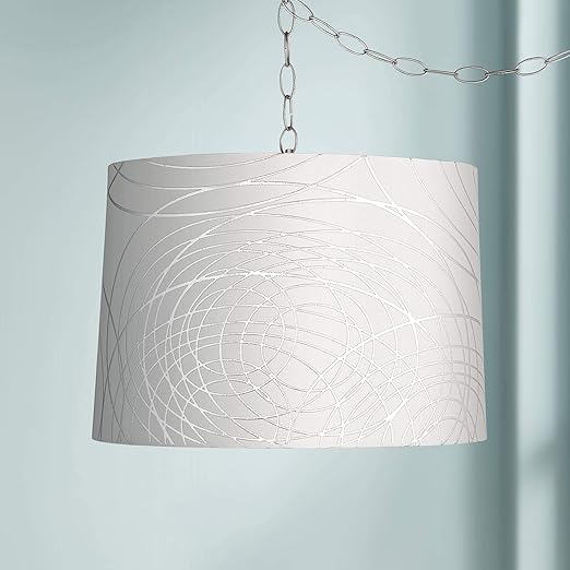 Abstract Silver Circles 16 W Steel Plug In Swag Chandelier Possini Euro Design