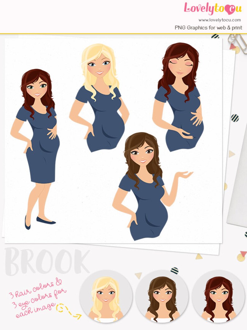 Pregnant Woman Character Clipart Maternity Woman Clipart Set With Blonde Brunette And Auburn Hair Brook L193