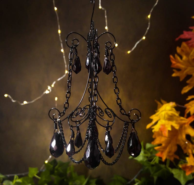 Black And Deep Purple Halloween Ornament Mini Chandelier Wire Wrapped