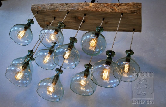 The Big Sur Live Edge Chandelier Recycled Glass Bottle Ceiling Fixture Hanging Pendant Light Farmhouse Decor Beach House Light