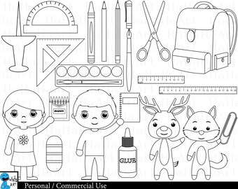 School Supplies Clip Art Black And White 60 Items For Commercial Use