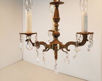 Vintage Spanish Brass Chandelier Waterfall Tiered Glass