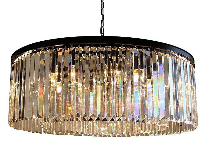 D Angelo 40 Inch Clear Glass Crystal Prism Chandelier Black