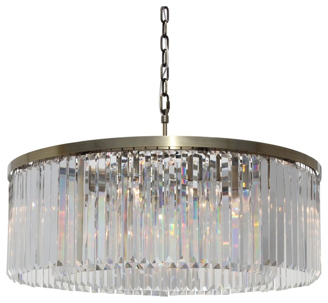D Angelo 12 Light Round Clear Glass Crystal Prism Chandelier Antique Brass Fini
