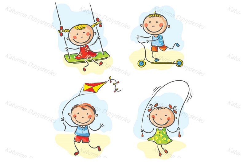 Set Of Cartoon Kids Outdoor Activities Sports And Games Kids Playing Illustration Kids Clipart Doodle Svg Clipart Kids Svg Image Svg